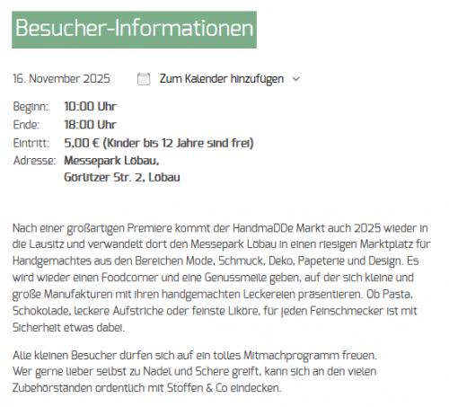 Am 16. November von 10 bis 18 Uhr starten wir mit dem Kreativmarkt im Messeparkt Löbau.