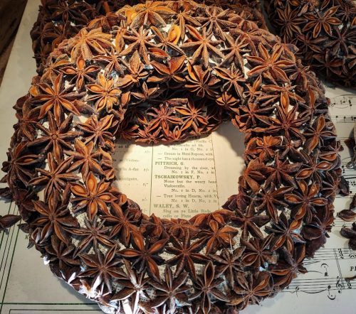 Anis ist nicht nur eine hervorragende und wertvolle Heilpflanze, sie läßt sich auch auf einem Kranz verarbeiten. Wir haben dieses auch einfach einmal probiert und ihr könnt auf den Fotos sehen.