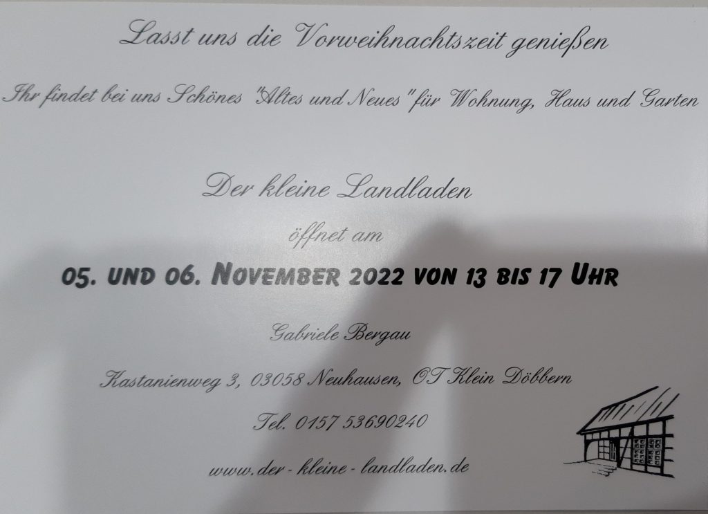 Am 05.11 und 06.11 Adventszeit auf dem Lande. Wir freuen uns auf euch.